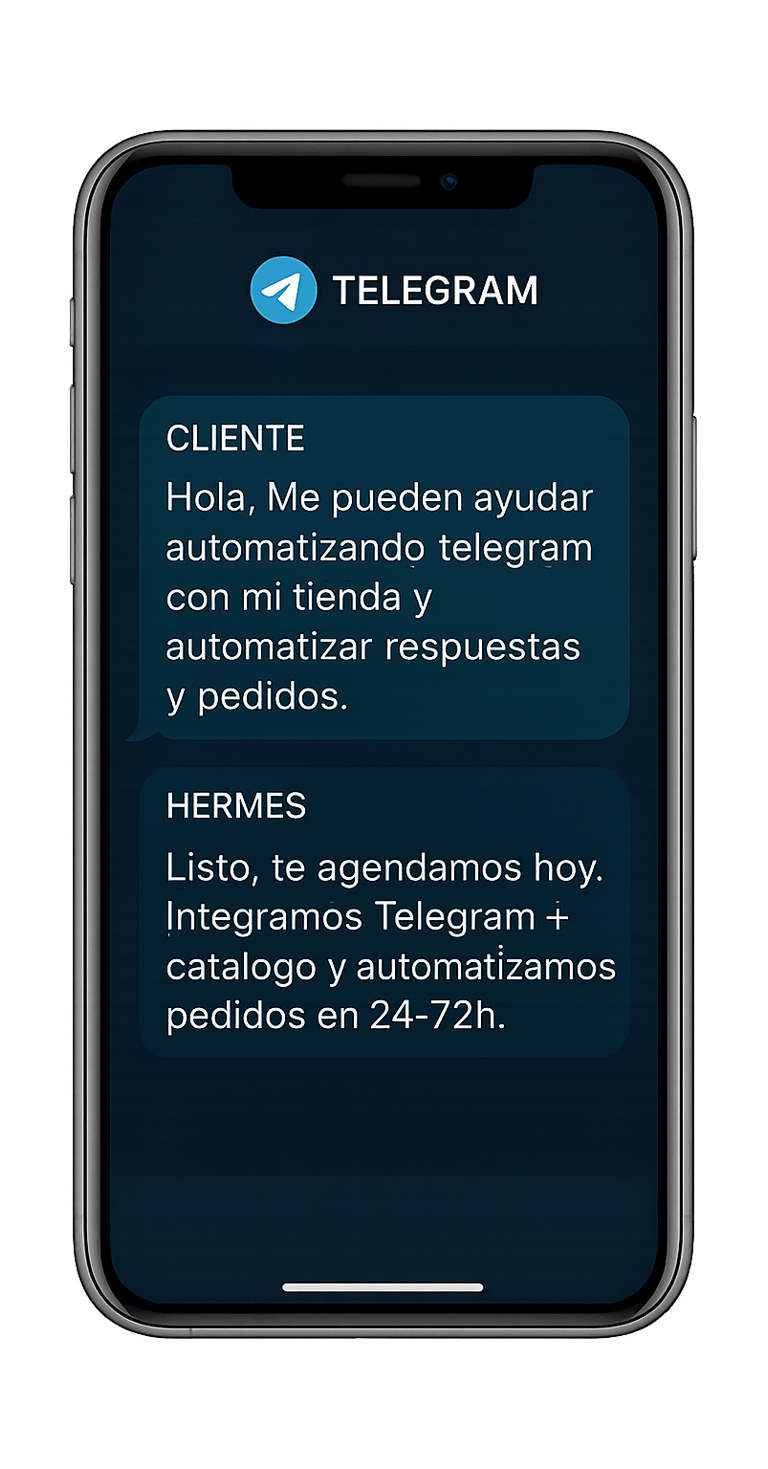 ¿Tus apps clave trabajan separadas? Nosotros las ponemos a trabajar juntas. Hermes automatiza la conexión entre herramientas vitales como WhatsApp, Telegram y Google Calendar para eliminar el copy-paste y los errores.